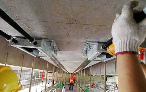 prestressed carbon fiber plate on the bridge